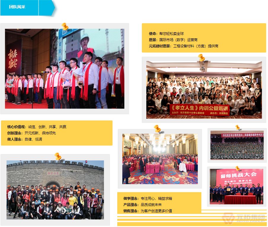 湖南元拓建材集團(tuán)股份有限公司(簡(jiǎn)稱:元拓建材集團(tuán))始創(chuàng)于1998年,以工程最前端的腳手架、鋁合金模板等產(chǎn)品為基礎(chǔ),現(xiàn)已發(fā)展成為集房產(chǎn)、工程、材料全產(chǎn)業(yè)鏈服務(wù)及多元化發(fā)展的大型實(shí)業(yè)集團(tuán)。元拓模架產(chǎn)業(yè)鏈板塊(簡(jiǎn)稱元拓模架)隸屬于湖南元拓建材集團(tuán),提供模架產(chǎn)業(yè)鏈解決方案––全系模架產(chǎn)品(含國(guó)際)、模架租賃及托管、勞務(wù)施工、數(shù)字模架、營(yíng)銷訂單解決方案、應(yīng)收解決方案。 元拓模架深耕全球市場(chǎng)24年,目前擁有天津和順昌、湖北元拓鋁模兩大模架生產(chǎn)基地,長(zhǎng)沙、青島、廣州三大子公司,埃及、印尼、迪拜、菲律賓等10多家海外子公司/辦事處。是中國(guó)石油、中國(guó)石化等世界知名石化施工企業(yè)指定供應(yīng)商和世界各國(guó)優(yōu)秀工程施工企業(yè)長(zhǎng)期戰(zhàn)略合作伙伴,銷售網(wǎng)絡(luò)遍布多個(gè)國(guó)家和地區(qū)。