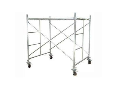 移動腳手架主要有主框,橫框,交叉斜撐,腳手板,可調(diào)底座等組成。交叉拉桿又稱斜拉桿、移動腳手架是縱向連接兩副門架的交叉型拉桿。桿件兩端壓扁部分沖有銷孔,組裝時與門架立桿上的鎖銷鎖牢。