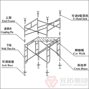 門式腳手架支模的部件介紹: